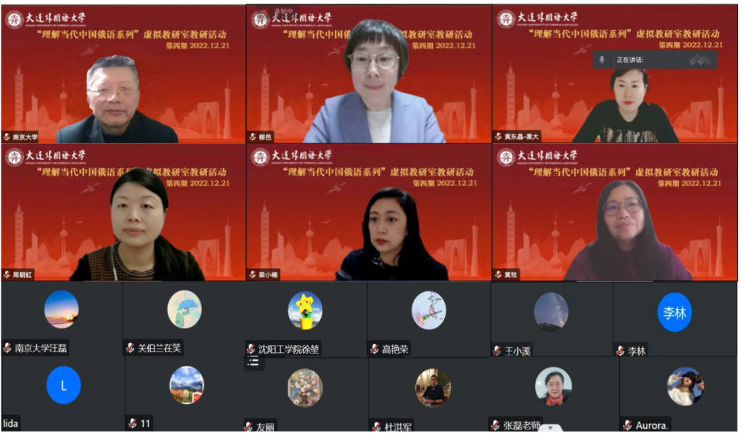2022年12月21日19点,由我校刘宏教授负责的教育部“理解当代中国俄语系列”虚拟教研室第四期教研活动在云端成功举办。