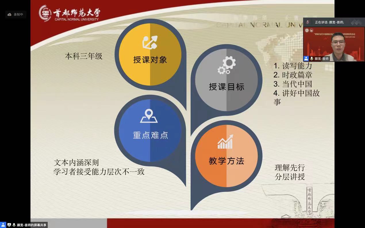 颜宽老师从教学过程设计、教学目标、教学内容与课程环节、教学评价与反馈等方面对《俄语读写教程》教学的各个环节进行了详细解读和教学展示。