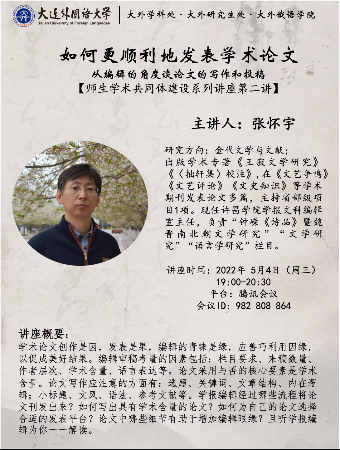 【师生学术共同体建设系列讲座第二讲】如何更顺利地发表学术论文——从编辑的角度谈论文的写作和投稿