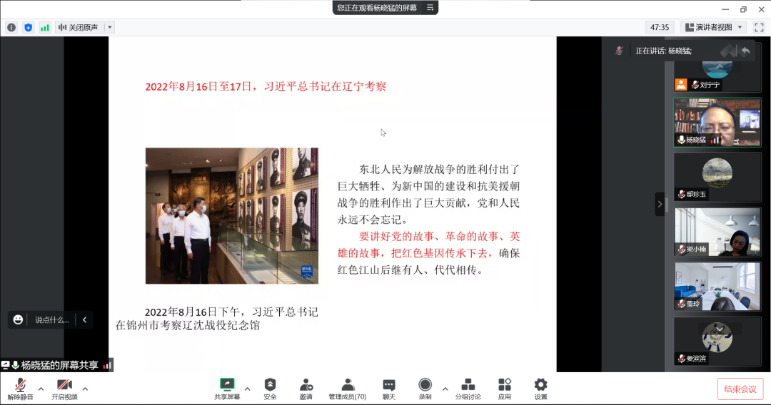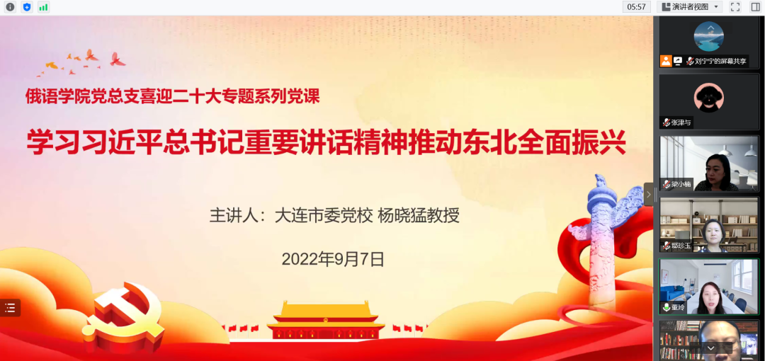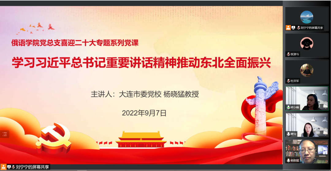 党总支举办九月党日活动暨“喜迎二十大”专题党课。大连市委党校杨晓猛教授以《学习习近平总书记重要讲话精神,推动东北全面振兴》为主题,做专题党课分享。活动由69书吧
