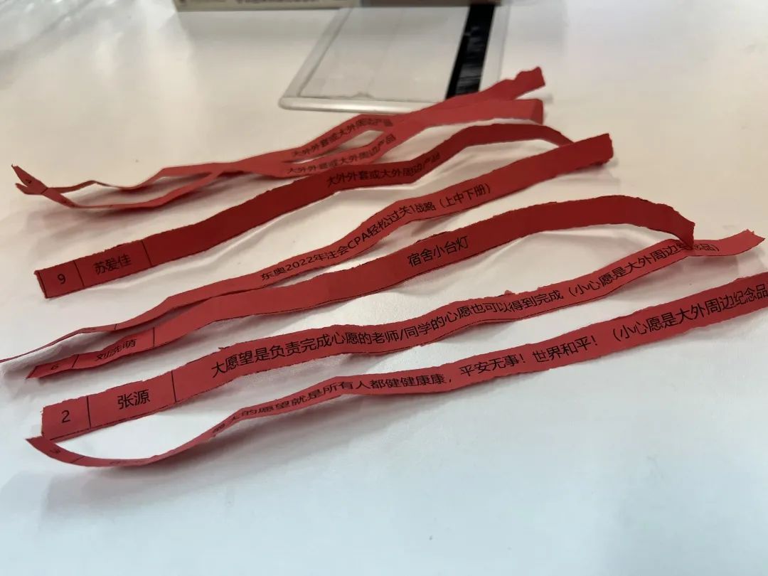 学生党支部收集的学生党员们心愿卡内容,国际交流与合作处以抽签方式现场完成党员学生们的小心愿。