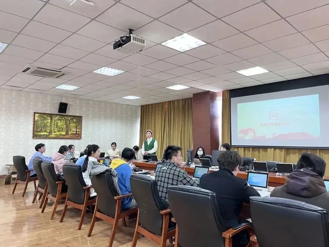 学生党支部在口译实验室召开了2022年度组织生活会同时开展了民主评议党员工作。会议由69书吧
