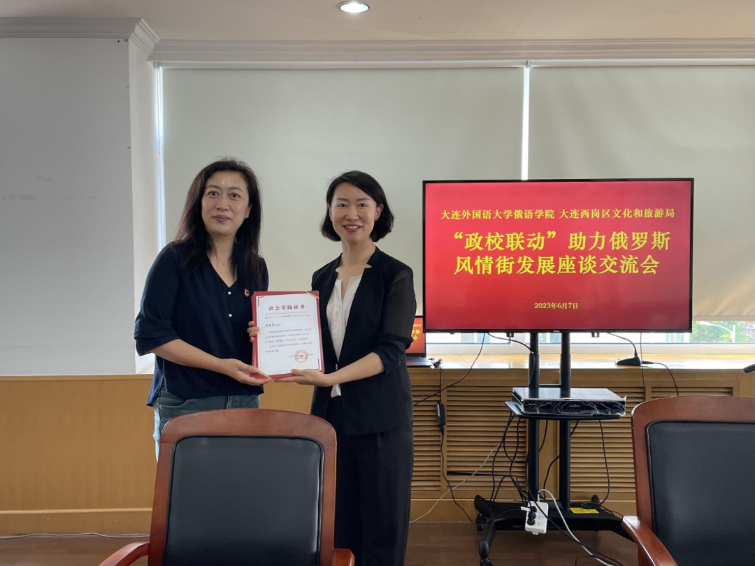 在俄罗斯风情街建设期间提供翻译服务的师生颁发了社会实践证书。