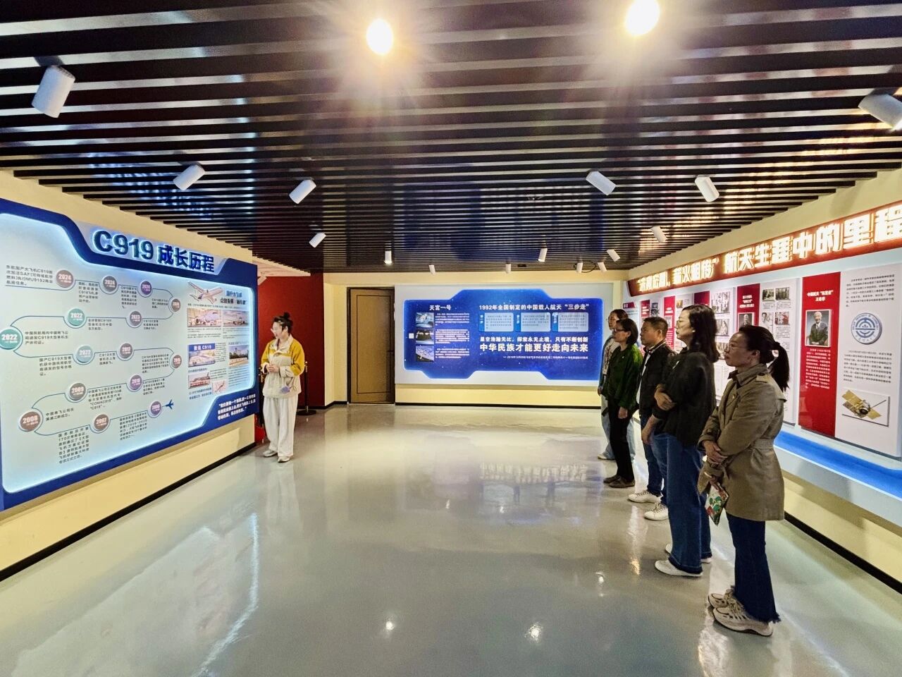 在航空航天主题展区,党员们了解到中国航空航天事业从无到有的发展历程,沉浸于祖国航天事业的辉煌成就中,每一处展示都让大家民族自豪感油然而生,深刻体会到“特别能吃苦、特别能战斗、特别能攻关、特别能奉献”的载人航天精神,这正是我们加强作风建设、追求卓越的生动教材。