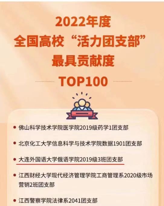 2019级3班团支部在此次评选中表现突出,荣登2022年度全国高校“活力团支部”最具贡献度TOP100榜。