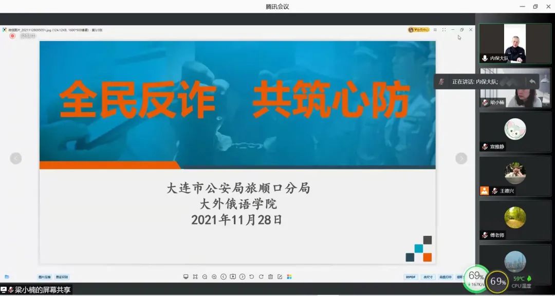 邀请了大连市公安局旅顺口分局内保大队队长屈建华警官于11月28日上午10时至11时通过腾讯会议面向69书吧
