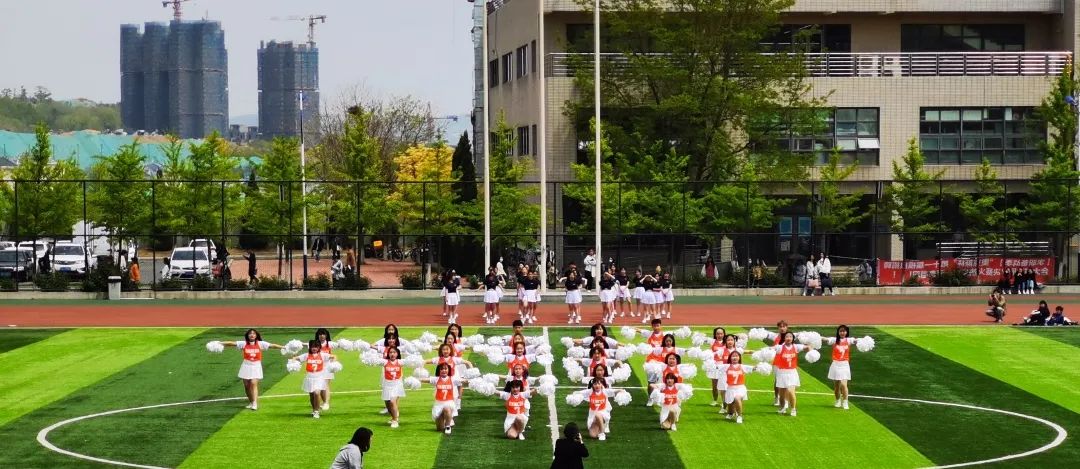 活力的音乐,点燃全场的气氛;自信的舞姿,秀出青春的风采。比赛场上,队员们手持花球,伴着动感的音乐《Problem》、《TiK ToK》,同心协力,焕发激情,绽放青春,为在场观众奉上了一场精彩绝伦的表演。