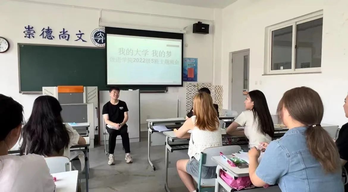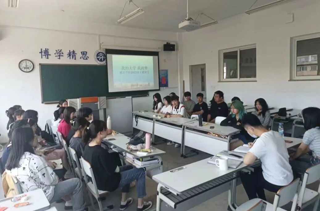2022级5个班级于6月末举办“我的大学我的梦主题班会,班会由辅导员王健老师主持,22级各班同学参加。