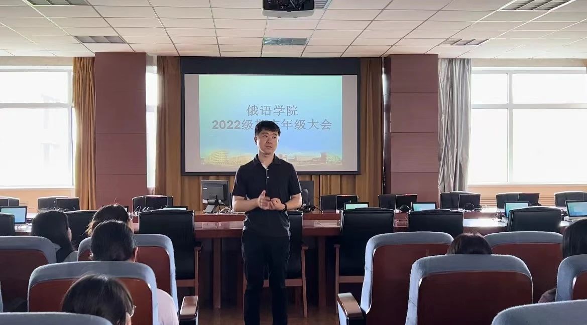6月28日中午,2022级年级大会于口译实验室开展。临近期末考试,2022级辅导员王健督促同学们认真准备期末考试,并建议同学们暑期积极寻找实习锻炼自己,并就假期留校相关事宜做出说明。