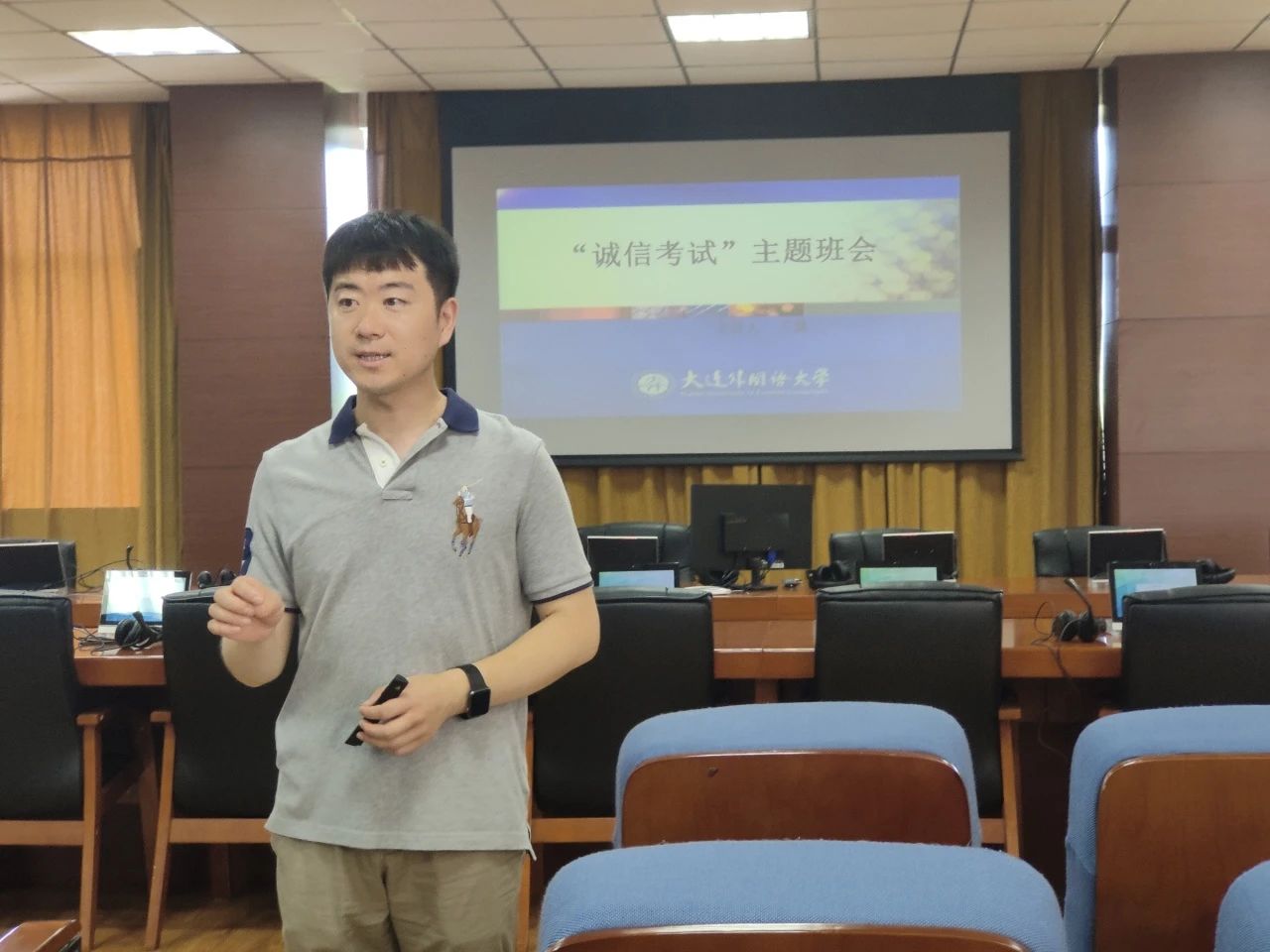 6月30日下午,在口译实验室先后召开了2020级和2021级年级大会。在首先召开的2020级年级会上,辅导员王健老师首先开展了“初心向党,喜迎七一”主题班会活动,对同学们提出了“发挥榜样作用、明确未来规划、有冲劲”的三点要求。之后分别又开展了诚信考试主题班会,假期安全教育大会和就业工作动员会,着重强调了就业工作的重要性,为即将到来的假期做准备,迎接即将到来的就业季。