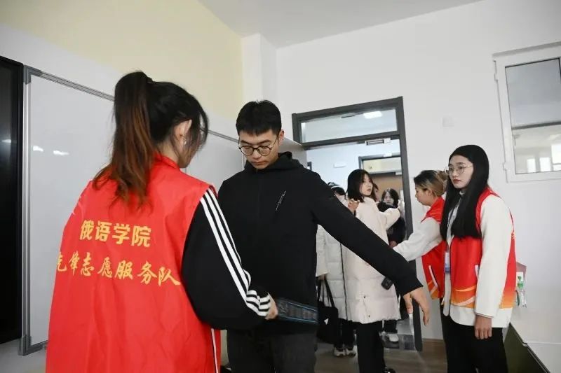 对本次比赛高度重视,在学校有关部门的指导和兄弟院系协助下,学院多次召开党政联席会讨论研究比赛细节,12月13日全体工作人员及志愿者实地对比赛流程进行现场推演,党总支书记梁小楠对本次比赛志愿者及工作人员进行了相关培训。报道组、备考组、考场组、对接组、后勤保障组等各组工作人员和志愿者通力协作,保障比赛顺利进行的同时展示了大外学子的专业风采。