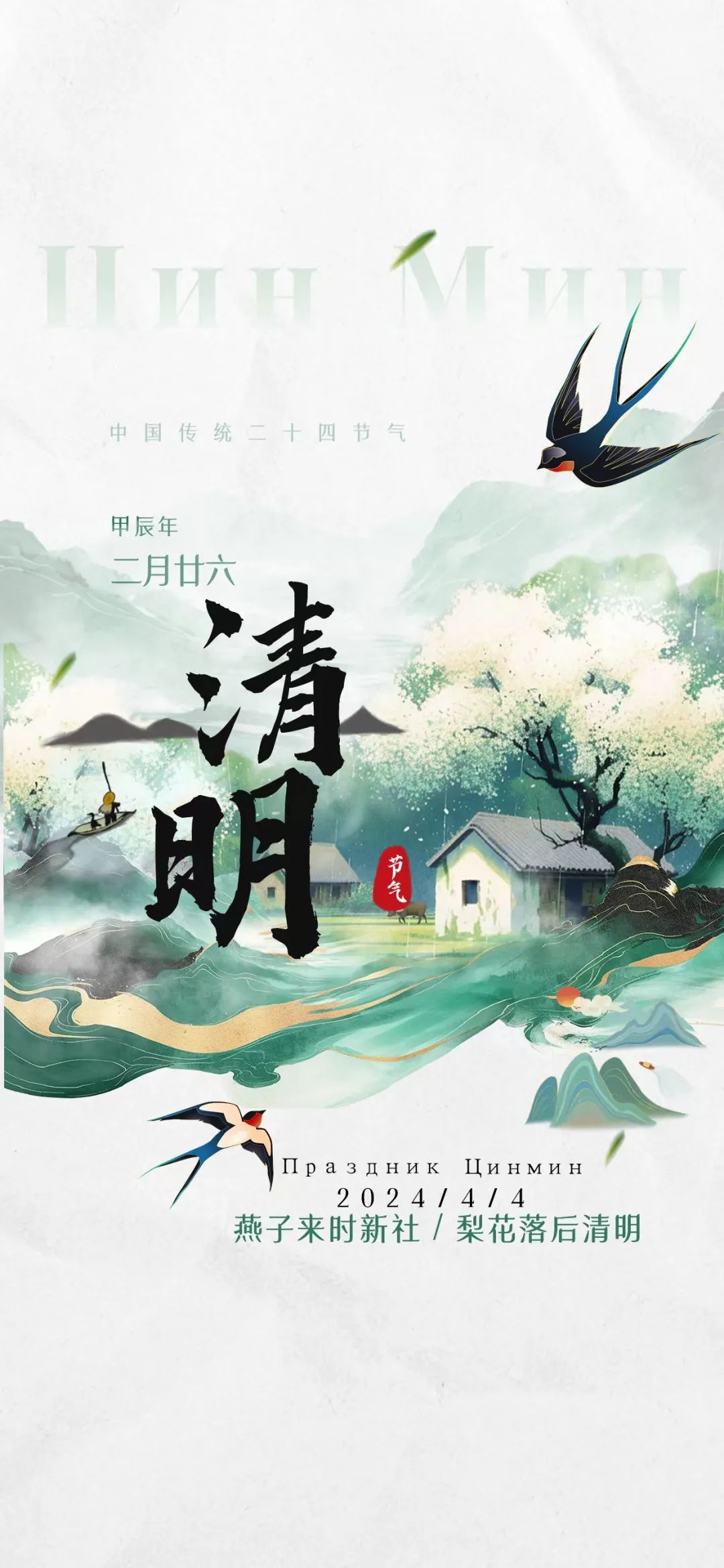 燕子来时新社,梨花落后清明