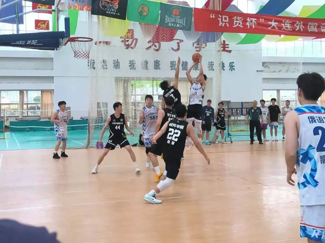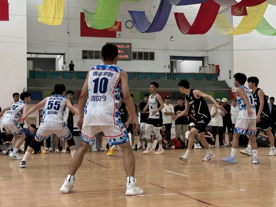篮球队在比赛中展现出了团结一致、敢打敢拼的精神风貌。队员们在场上奋力拼搏,相互支持,充分展示了篮球的魅力和精神内涵。场下俄院啦啦队员也为球员加油助威,展现出了俄院团结一致氛围。