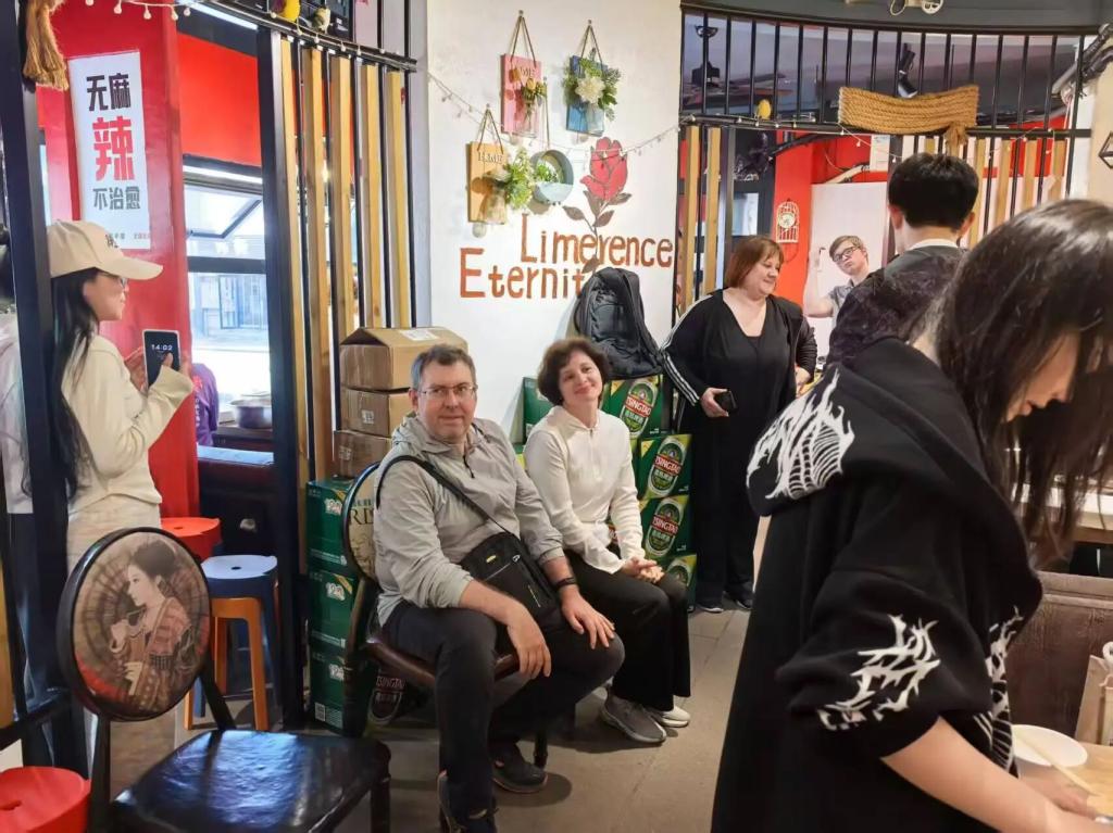 本次比赛邀请到外教马克西姆、茵娜、克谢妮娅担任评委,评委席前佳肴纷呈。选手们需要用俄语向各位评委进行作品展示和味道阐述,评委们认真倾听,专注品尝菜品,从色泽、口感、创意多维度考量,不时交流讨论,给出专业且公正的评判。