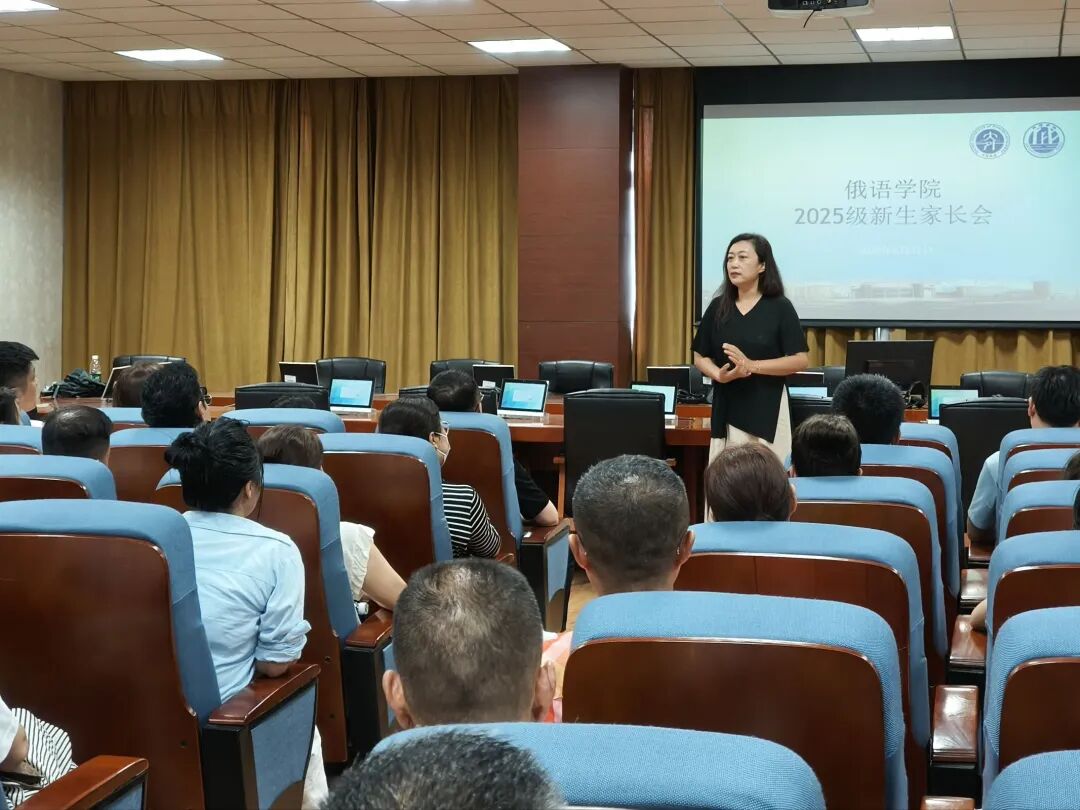 下午1点半,励学楼口译实验室里座无虚席,2025级新生家长会在此温馨召开。会上,院长梁小楠围绕专业课程、实习实践、国际交流等方向展开说明,清晰勾勒“有专业本领、有家国情怀、有国际视野”的人才培养路径;新生辅导员王健则详解奖助学金、入党流程、保研政策,让家长全面了解学院保障,共同为新生的大学之路“保驾护航”。随后,新生辅导员美合日古丽·喀哈尔首先对家长们的到来表示欢迎,通过详实的图文介绍69书吧