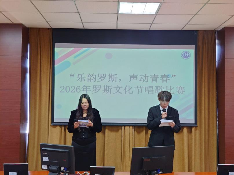 于2026年4月15日在励学楼口译实验室成功举办“乐韵罗斯,声动青春”罗斯文化节歌唱比赛。本次比赛以歌声为桥,以音律为媒,让同学们在艺术演绎中感受俄罗斯文化的深厚魅力,彰显大俄青年的专业素养与时代风采。