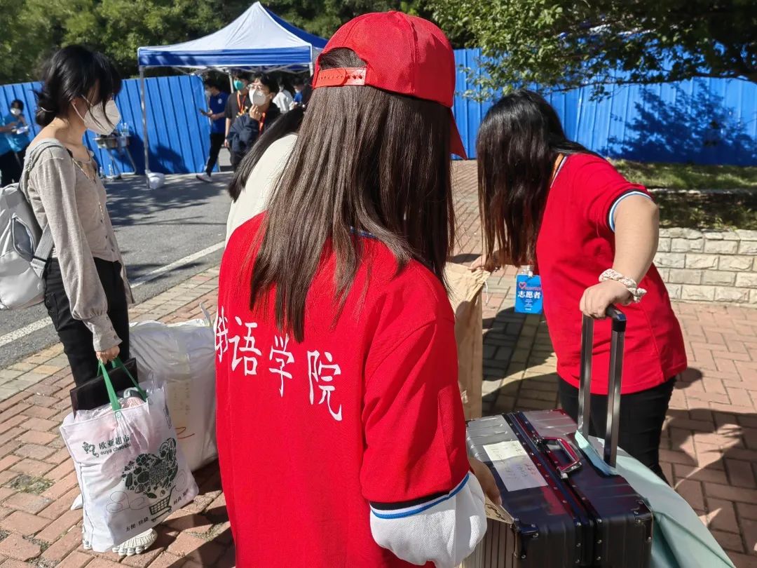 “俄院真的好体贴,我刚下车打开车门,学姐学长们就开始给我拿行李,我东西特别多,好多学姐学长帮忙。”