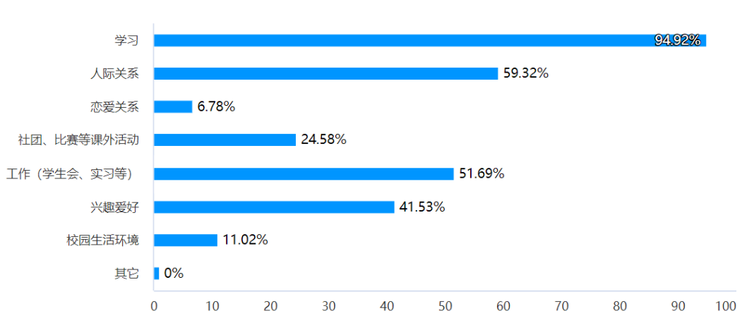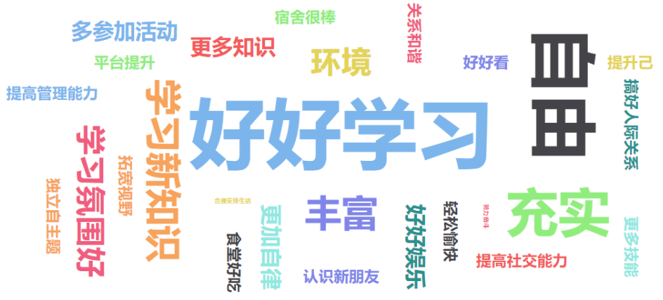 在“认为大学生活中最重要的方面:”回答前三的分别是”学习”“人际交往”和“工作”,期待22级出现更多的“学霸”“社牛”!