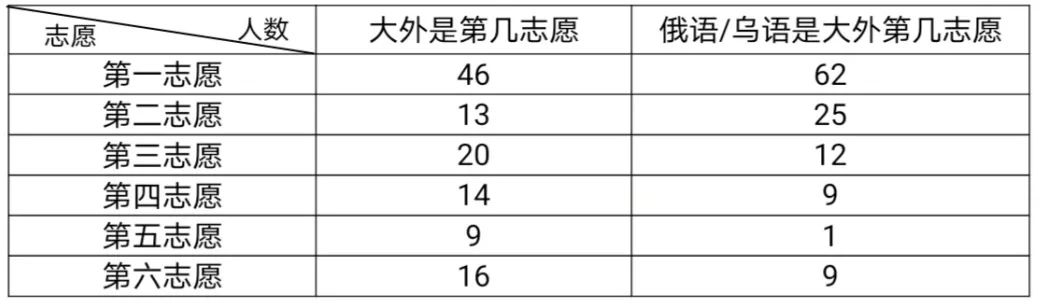 有46名小伙伴第一志愿钟情于大外,其中更有62名小伙伴第一志愿选择了俄语或者乌克兰语。