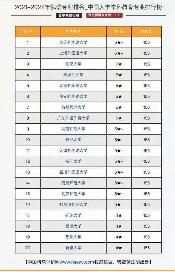 我校俄语专业在中评榜《中国大学及学科专业评价报告(2021-2022)》排名第一