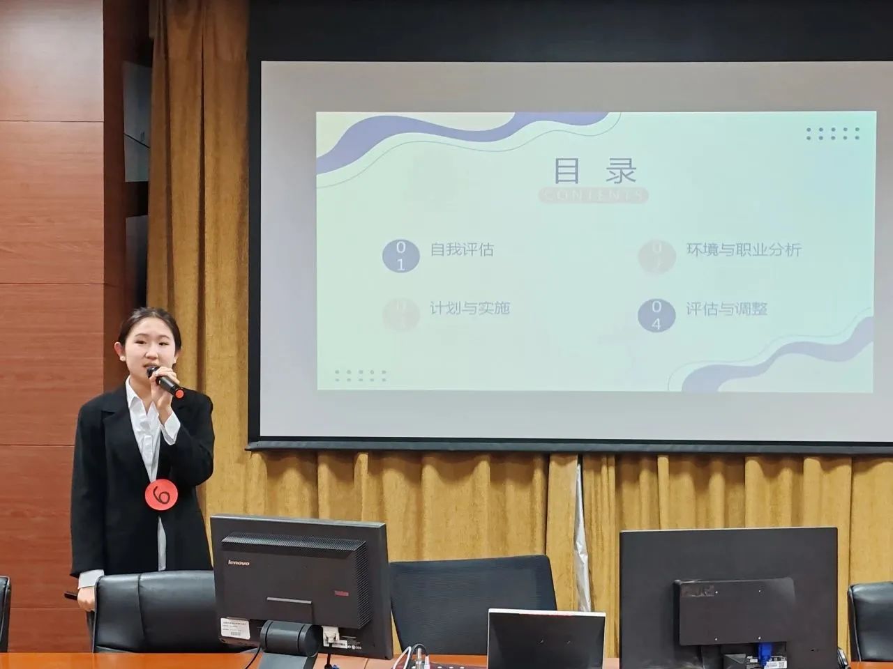 比赛过程中,选手们详细认真地阐述自身的职业规划内容,将本人大学规划以及与对于未来的职业发展目标用熟练的语言表达能力生动的展现出来。之后的压力问答环节,选手们更是用从容不迫的心态巧妙流利地进行了回答。