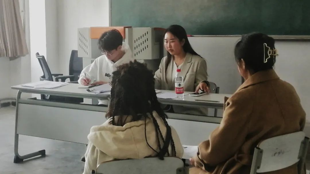 比赛开始,选手们有五分钟的准备时间。五分钟后,选手们轮流进行自我介绍,阐述求职的岗位以及自身的优势。他们娓娓道来,清晰明了地向评委们阐述了在校经历和实习内容。自我介绍结束后,选手们进行20分钟的无领导小组讨论。在此过程中,选手们根据面试题目各抒己见,现场氛围热烈而紧张。集体讨论结束后,选手们回答评委提出的问题。在紧张的多轮提问后,选手们结束离场。