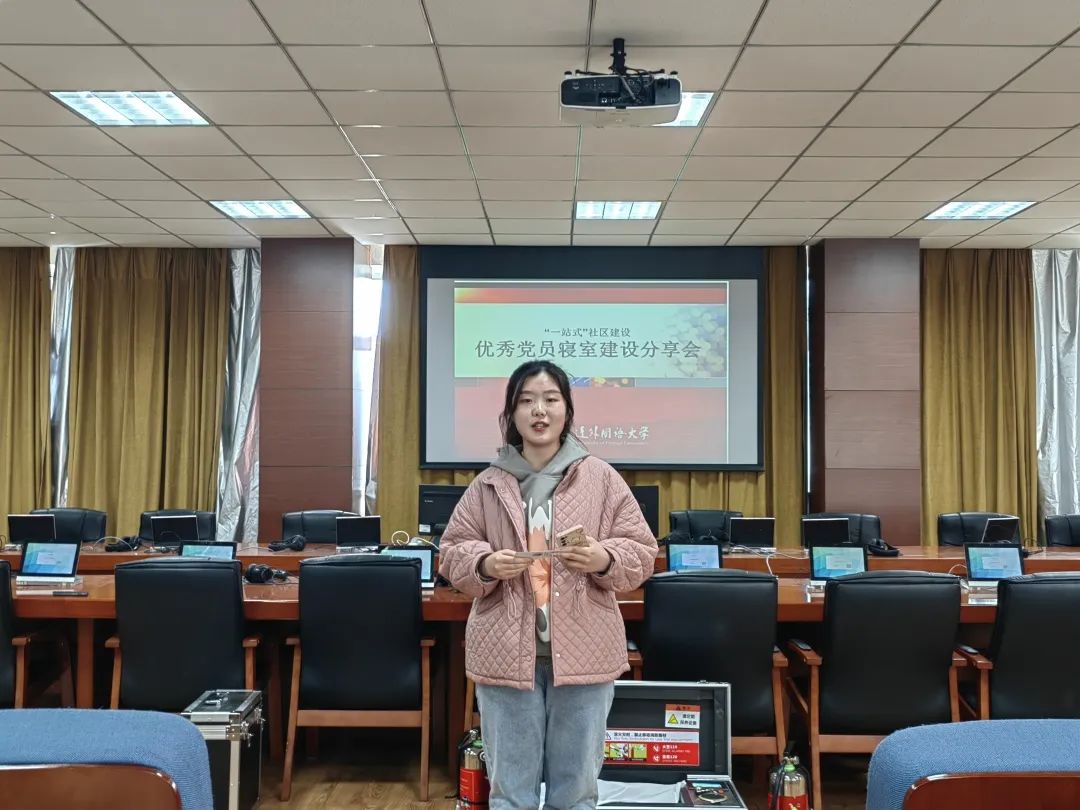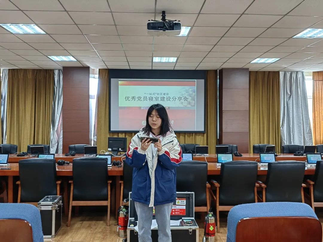 随后优秀党员寝室长代表安郑蕾同学分享了自身与舍友相处的经验,以亲身经历告诉大家舍友关系的重要性。宿舍生活将是大学时期一段难忘而美好的回忆,安郑蕾同学强调应主动与舍友加强沟通,解决问题,营造轻松愉悦的寝室氛围。
