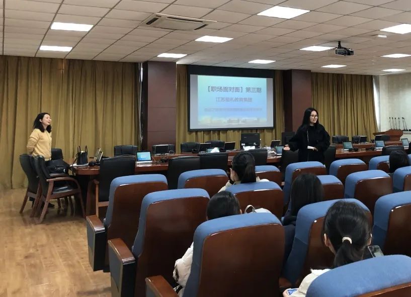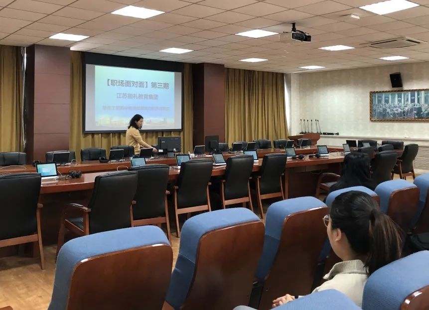 在一段开场简短的视频介绍后,玺礼教育集团HR彭老师细致地为大家一一介绍集团发展历程、工作简介、薪资待遇、岗位与职责,任职要求等相关问题,鼓励同学们满怀责任心与工作热情加入玺礼大家庭。在随后的提问环节中,同学们积极就行业相关问题表示疑问,讲解老师也细致地对同学们的问题做出解答,帮助同学们对工作建立更加清晰的认识。