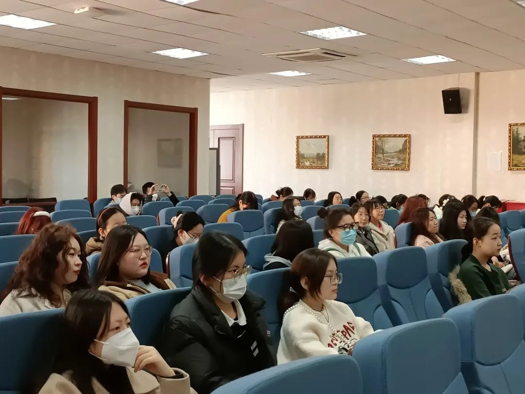 为充实学院学生就业需求,拓宽未来就业渠道,实现校园与职场对接,3月13日上午,69书吧 与学院实习实践基地江苏玺礼教育集团首先于资料室就学生实习实践、集团人才需求等问题进行了座谈会。随后,江苏玺礼教育集团于69书吧 口译实验室开展了高中俄语教师职业俄语专场宣讲会,向同学们介绍岗位相关的职责与需求,会议由毕业年级辅导员美合日古丽老师主持。