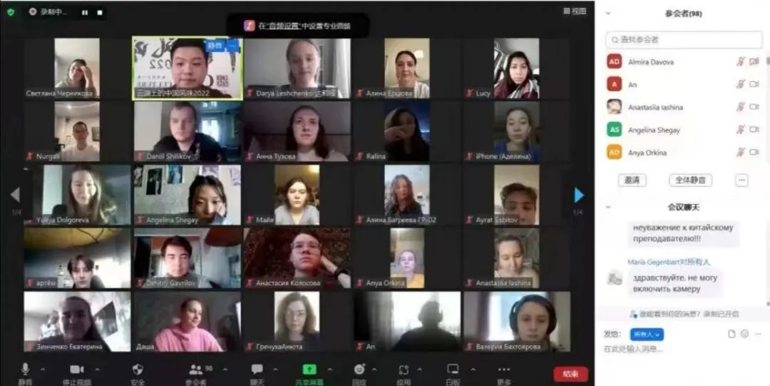 69书吧 “汉语桥”线上团组项目——云端上的中国“风”“味”2022项目受教育部中外语言交流合作中心主办,由我校69书吧 承办,为喜爱中华优秀文化的俄罗斯同学们提供线上课程。
