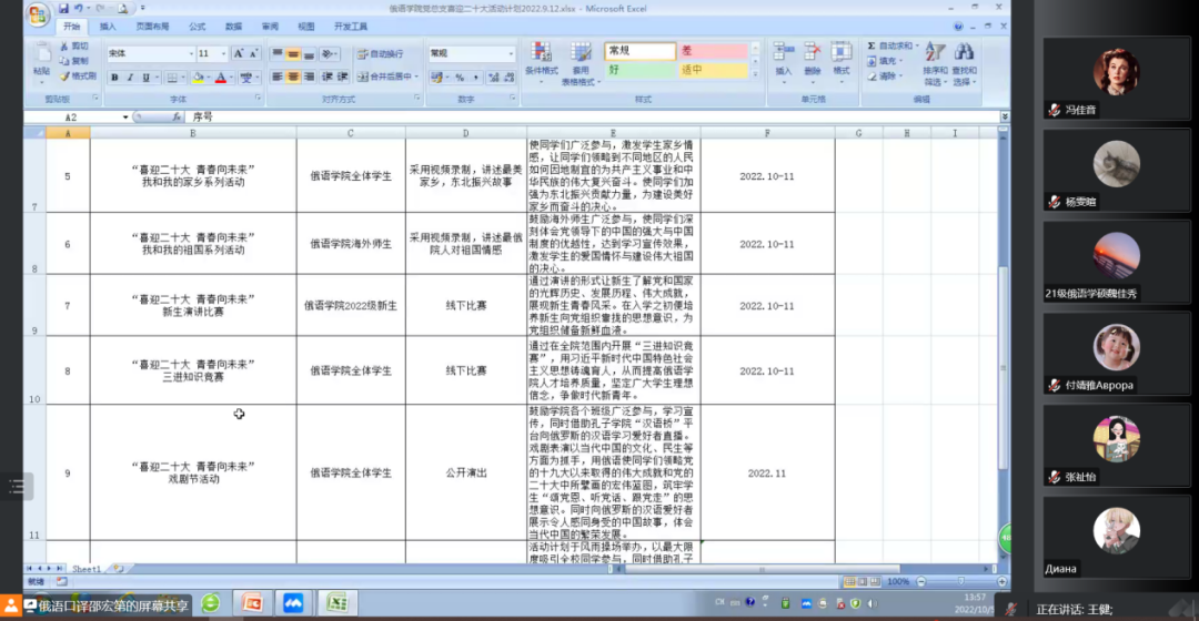 随后王健老师介绍了学生党支部“喜迎二十大,青春向未来”系列活动的安排,其中包括“喜迎二十大,青春向未来”新生演讲比赛、三进知识竞赛、戏剧节、民族文化节等活动。
