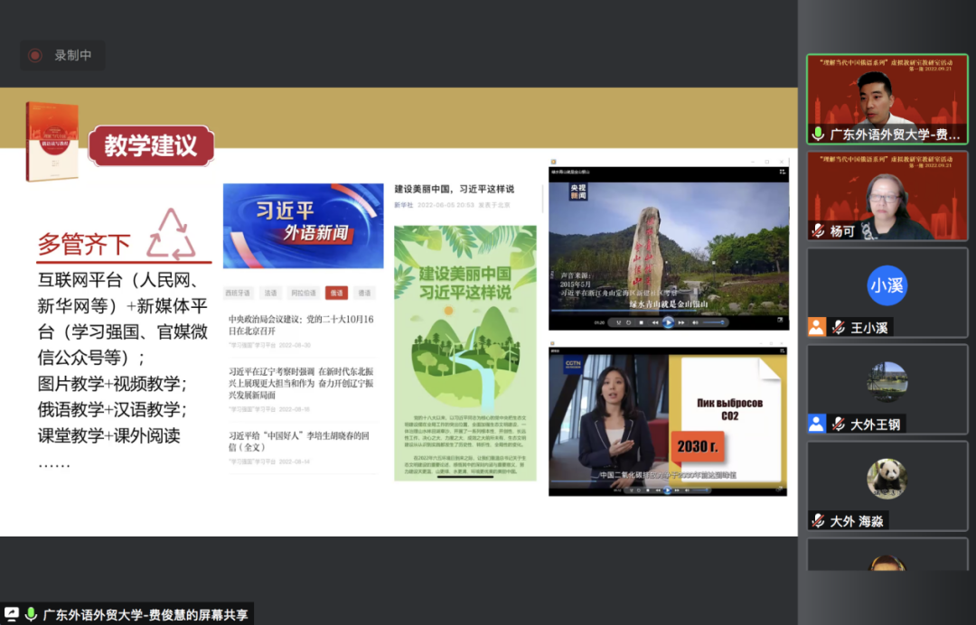 我校“理解当代中国俄语系列”虚拟教研室 成功举办第一期教研活动