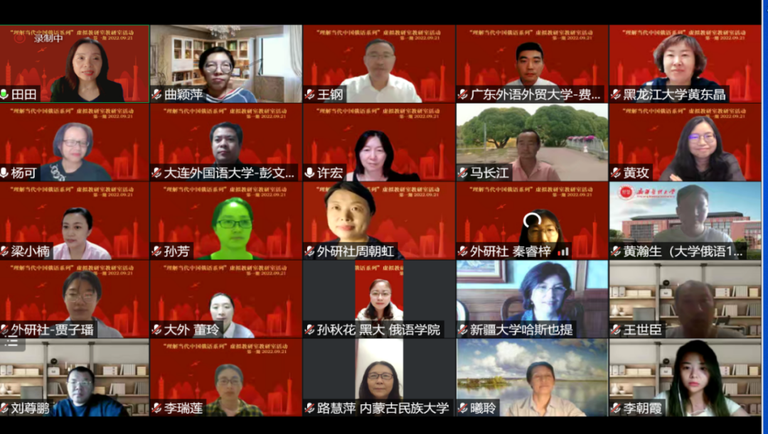 2022年9月21日19点,由我校刘宏教授负责的教育部“理解当代中国俄语系列”虚拟教研室第一期教研活动在云端成功举办。