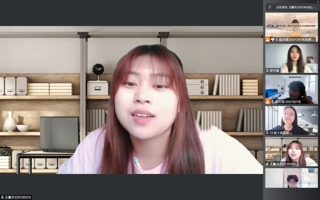 在班导生们的亲切主持下,主题班会在一片轻松愉快的氛围中展开。2022级各班新同学们相继进行加入新集体后的首次自我介绍,畅所欲言开学一周以来的新奇见闻和独到见解。当然,初来乍到的新生们总少不了谈及自己未来大学生活的展望与目标,畅谈自己的大学梦青春梦。衷心祝愿他们在大外能够终成正果,创想未来。