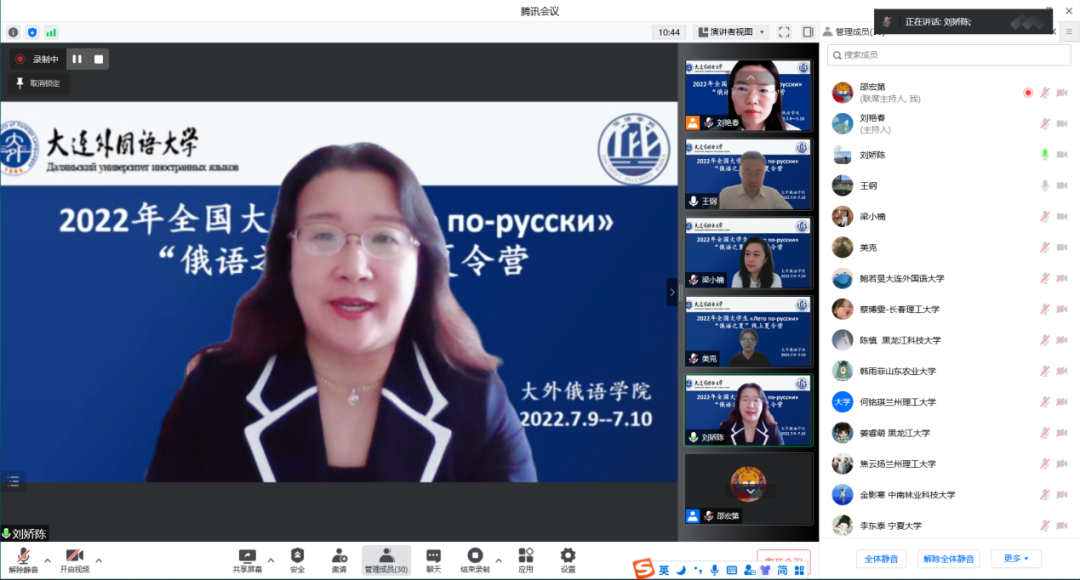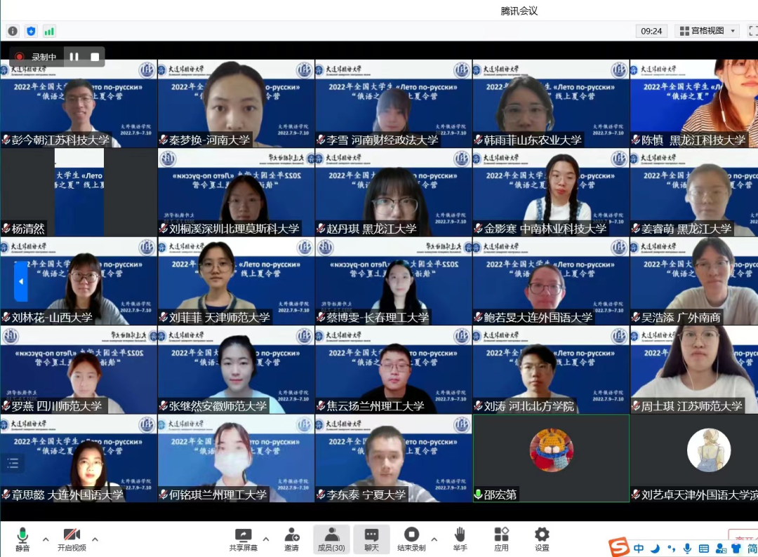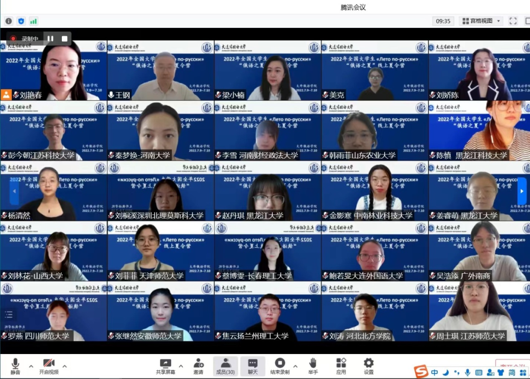 为进一步加强我校俄语学科建设,促进全国优秀大学生之间的交流,吸引优质生源,在研究生处的大力支持下,7月9日至10日69书吧 2022年全国优秀大学生«Летопо-русски»“俄语之夏”线上夏令营活动成功举行。来自黑龙江大学、宁夏大学、山西大学、深圳北理莫斯科大学、四川师范大学等20所高校的25名优秀学子线上雅集,求学问道。