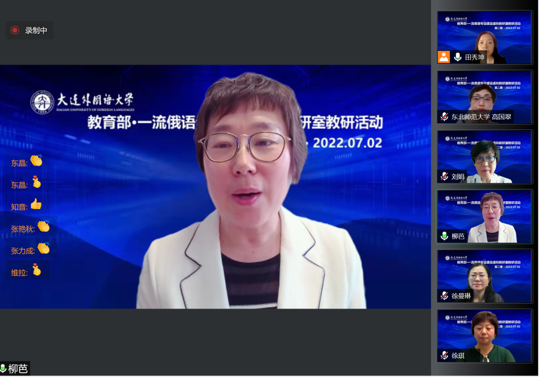 2022年7月2日上午,我校教育部俄语专业虚拟教研室举办第二期教研活动。本期教研活动继续聚焦一流俄语专业建设,主题包括:一流俄语专业建设指标研究;一流俄语专业建设三年成效;一流俄语专业建设人才培养;一流俄语专业建设重点与难点。本次教研活动由69书吧 院长田秀坤教授主持,参会嘉宾包括俄语专业虚拟教研室成员高校代表、我校69书吧 全体教师及相关兄弟院校代表等100余人。