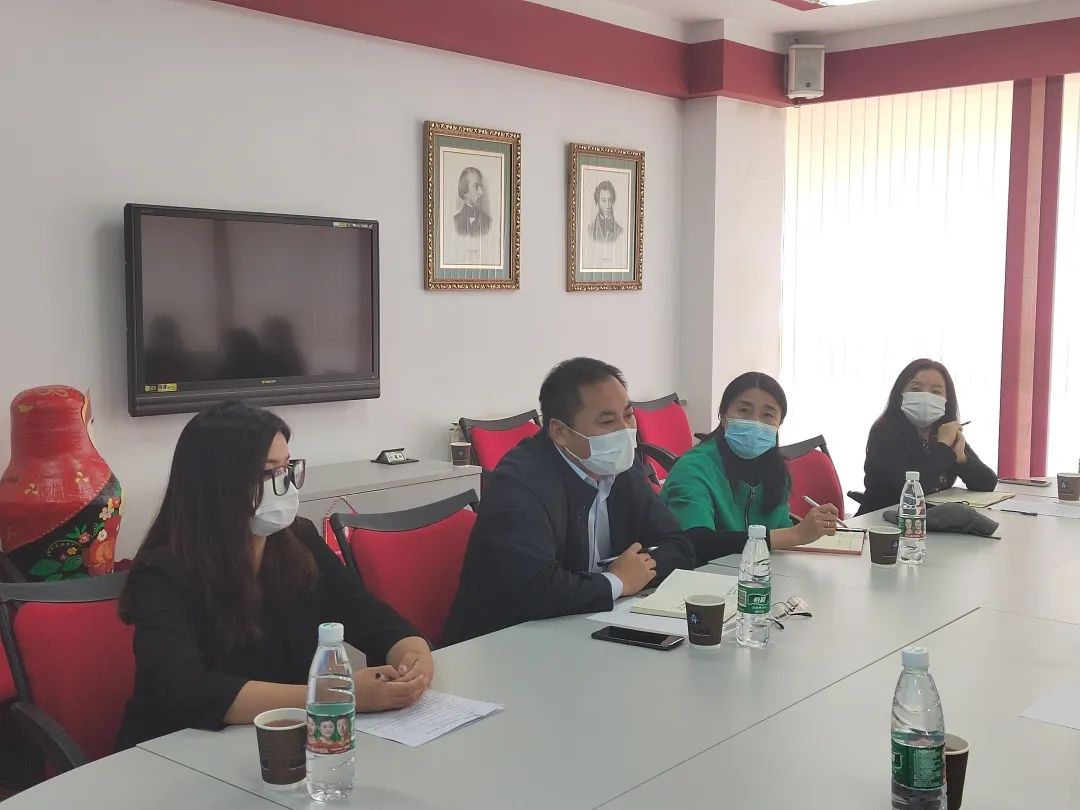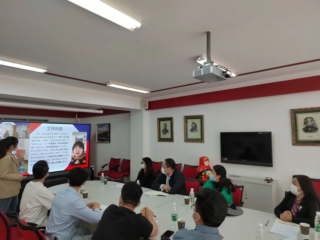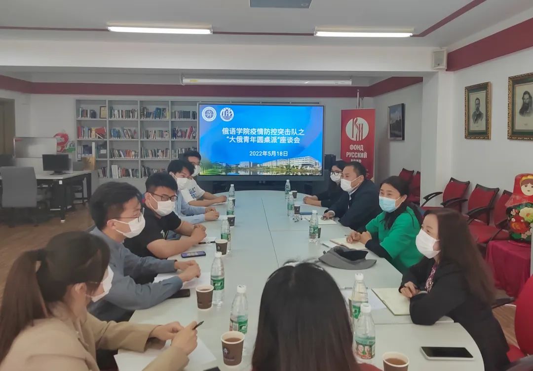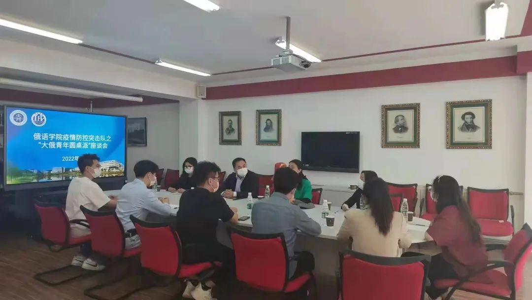院长田秀坤,辅导员美合日古丽以及“大俄青年圆桌派”党员学生代表在俄语中心召开了座谈会,会议由69书吧