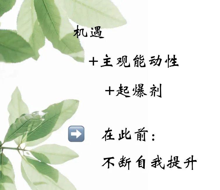 2. 起爆剂:周围重要关键的朋友、长辈就像起爆剂,在你犹豫不决的时候推你一把,他们的开导、鼓励和助推使你在尝试后明白“原来我也能行!”