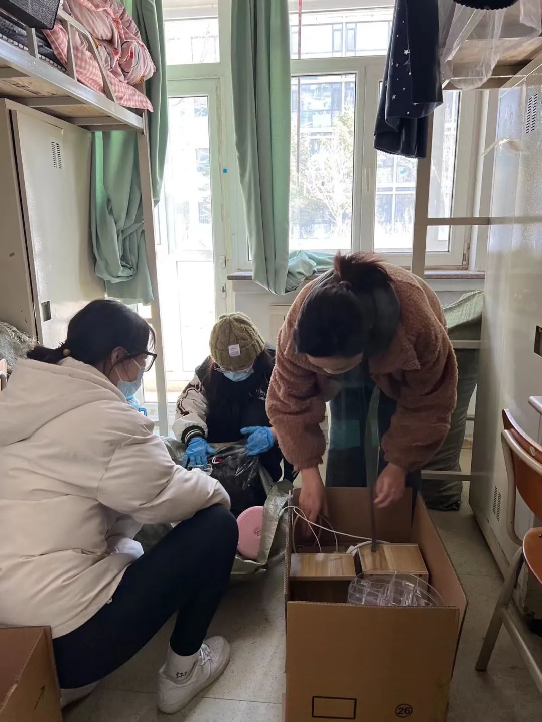 疫情防控党员先锋突击队女队员们整装待发,他们分为指挥组、搬迁组和联络组等三个小组,井然有序地进行整理寝室、打包物品、清洁卫生等工作,原本杂乱的寝室在学院疫情防控突击队队员的帮助下焕然一新。物品打包整理完成之后,大家还将遗留的垃圾清理干净,减少宿管阿姨打扫卫生的工作量,这些充分体现了作为党员的基本素养。