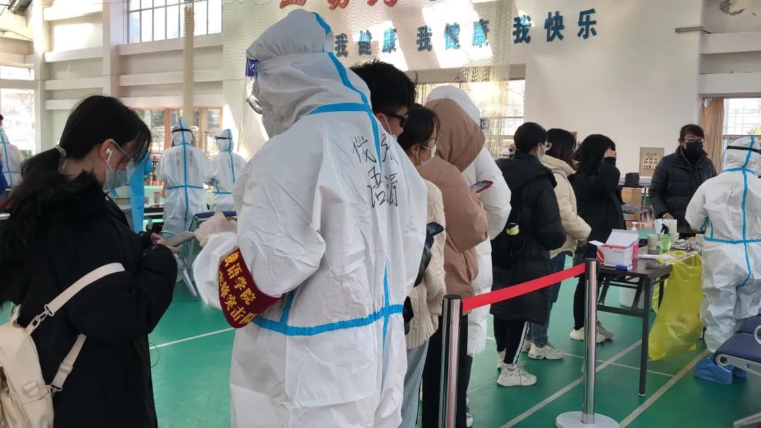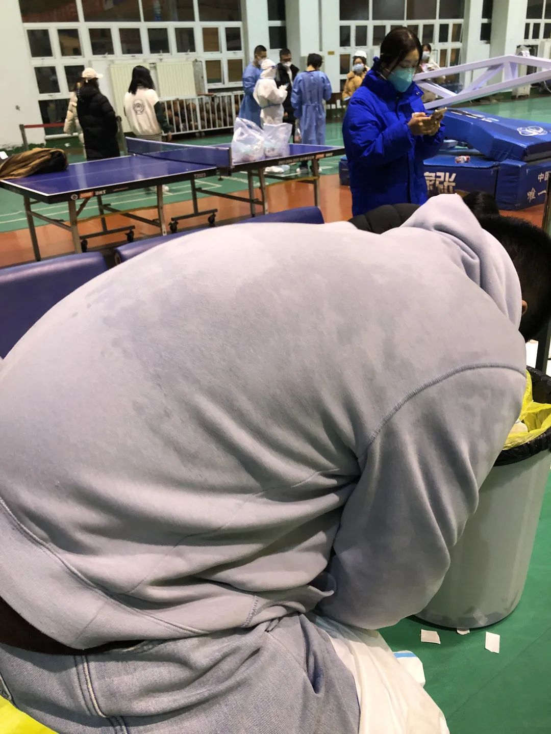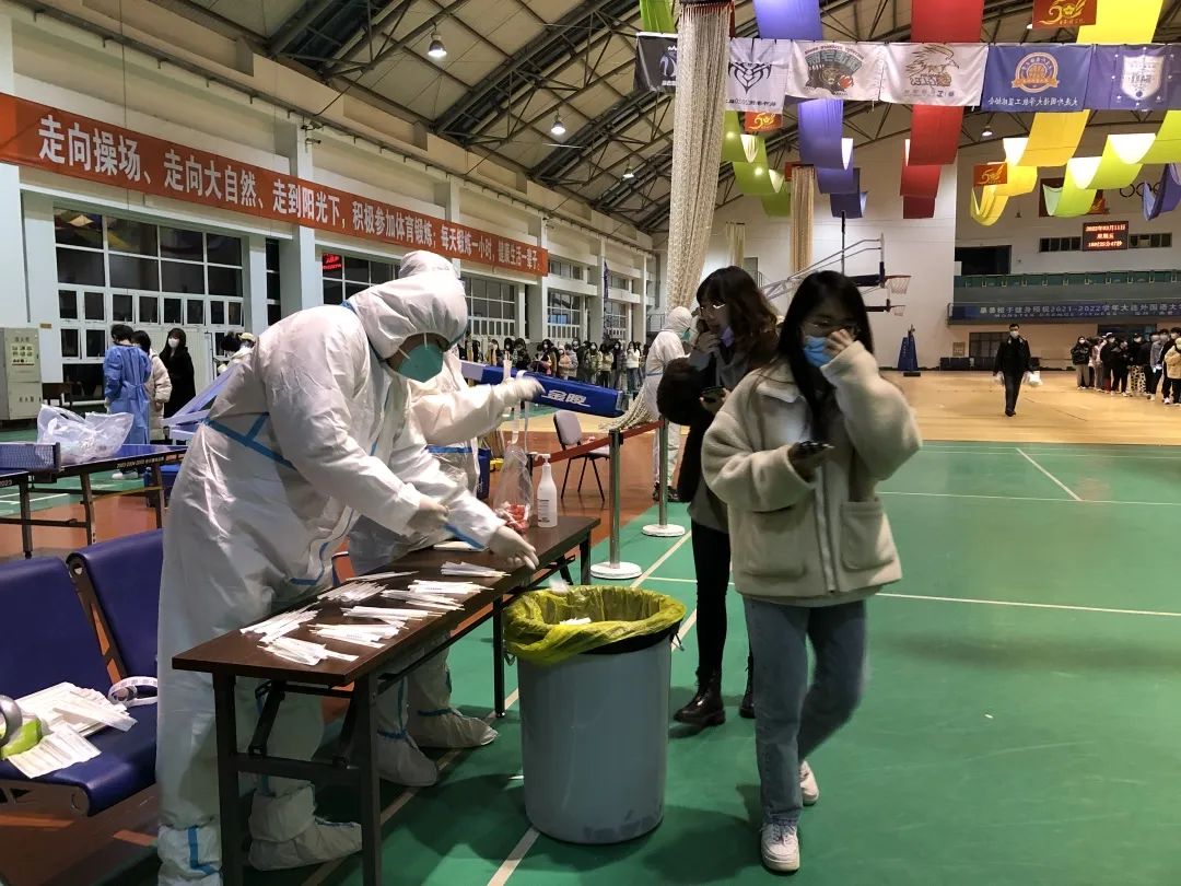 场馆里一排排的核酸队伍前,“大白”们忙碌不停,穿着厚厚的防护服,一次又一次举起设备扫描健康码,防护服里密密的汗珠,早已举酸了的手臂,他们不在意,他们没怨言。