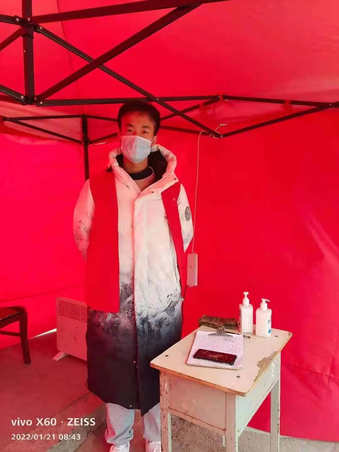 娱乐场所封闭,饭店禁止堂食。入冬后,疫情压力再次增大,我总想为之做些什么。于是我报名成为了抗疫志愿者。当然,我只是抗疫大军中小小的一员,每天的任务也只是检查出入人员的绿码。可就像那句《孤勇者》中的歌词:“谁说对弈平凡的不算英雄。”我想我也在用自己的力量,有一分热,发一分光。