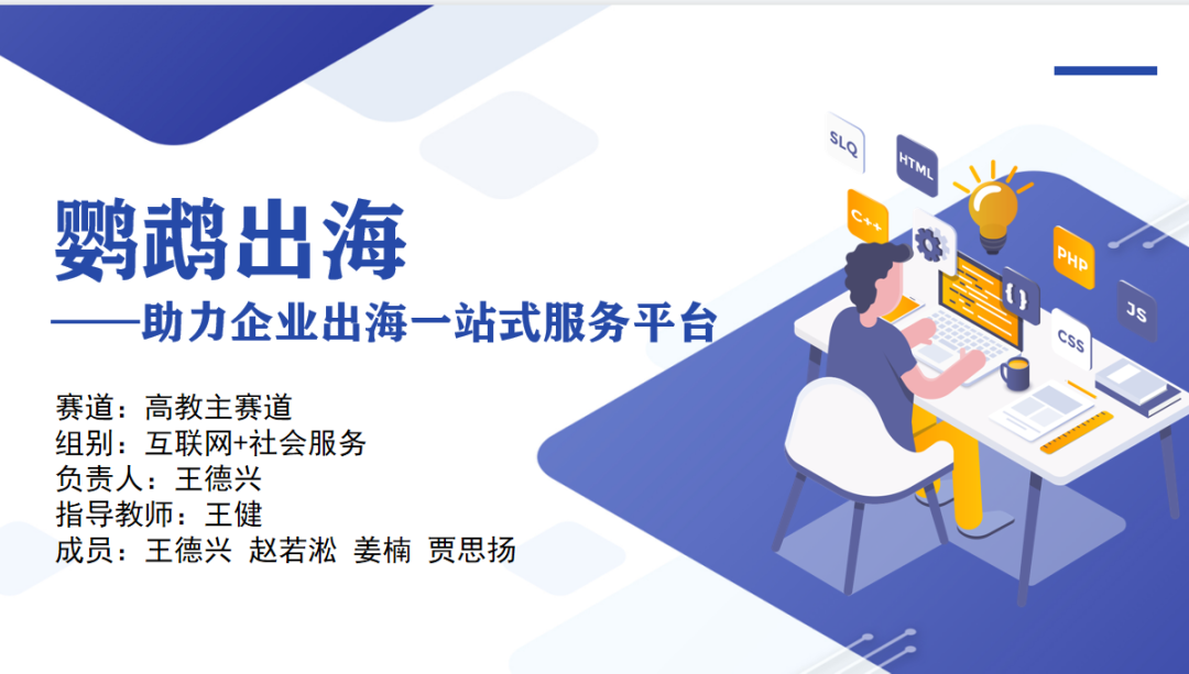 项目简介:“鹦鹉出海”项目结合外语专业学生特色,经过两年的打磨,项目为解决当前国内出海企业缺乏出海人才,国内外语专业大学生实习难,就业难,工作与专业不对口的问题,鹦鹉出海项目致力于为企业提供出海人才培养与引荐,帮助外语类大学生获得实习机会。项目前期着力打造学生-企业-导师型社群,为企业与外语类大学生搭建直接沟通的平台,更好地帮助出海企业招募到优秀的人才,走出国门,同时也为当代中国外语类大学生提供更多实习实践机会;中期致力于建设人才服务Saas系统,帮助企业实现办公云端化,标准化;后期致力于为出海企业提供全方位专业领域的咨询服务。