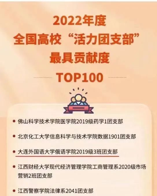 2019级3班团支部在此次评选中表现突出,荣登2022年度全国高校“活力团支部”最具贡献度TOP100榜。