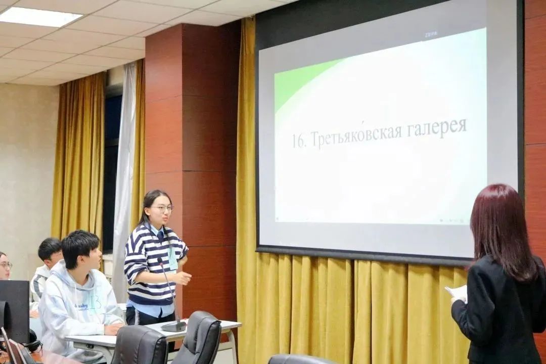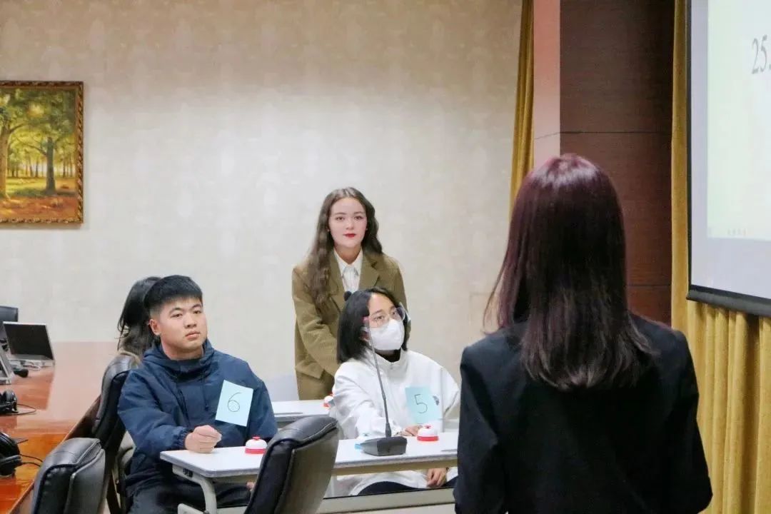 评委团由2019级俄语专业安郑蕾,雷佳润,段宇嘉同学和2019级乌克兰语专业田杰同学组成,参赛选手分别来自2022级俄语专业和乌克兰语专业。本次比赛选手们一共分为五组,采取抢答方式进行作答。