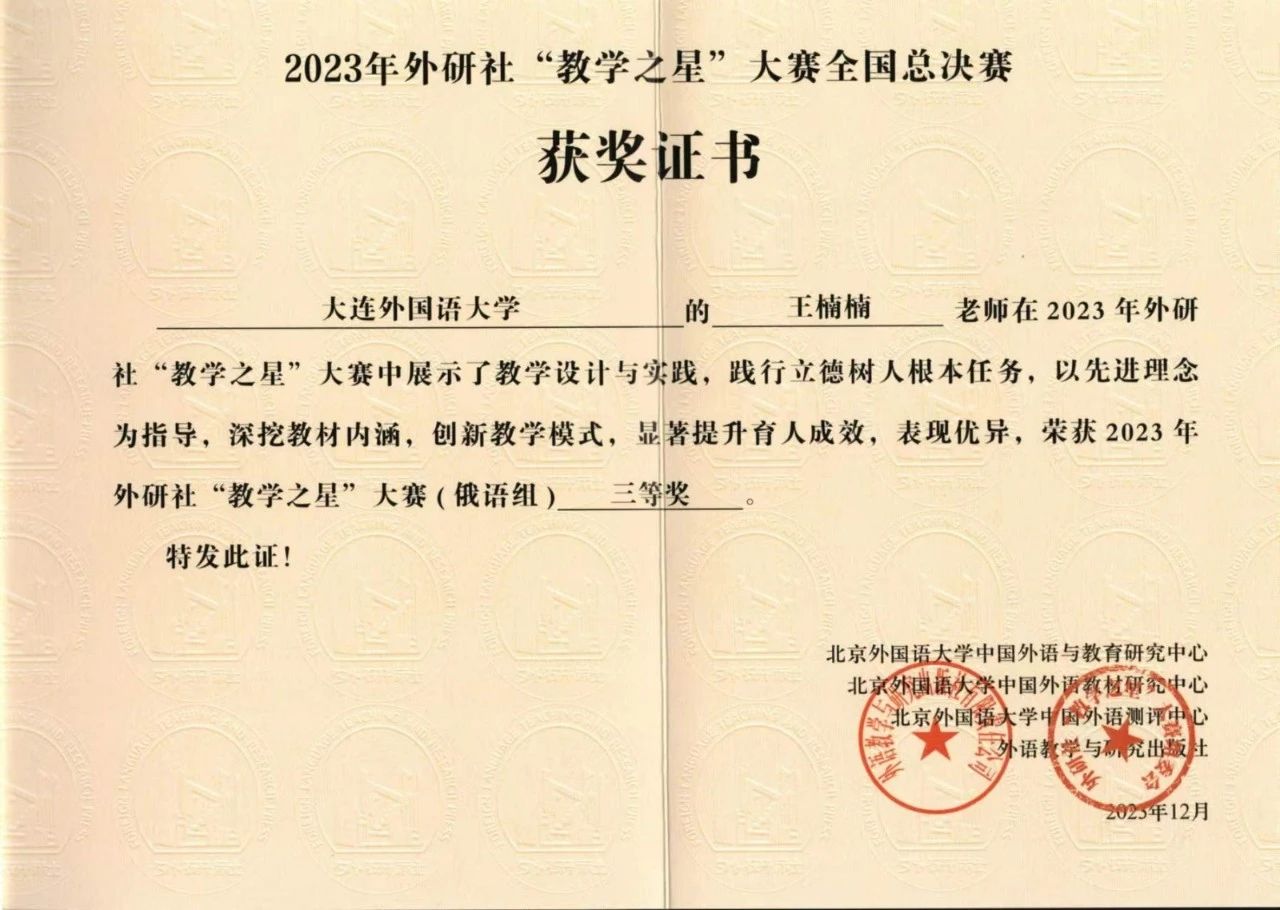 教师李瑞莲在2018外研社多语种“教学之星”大赛全国总决赛中获得俄语组亚军