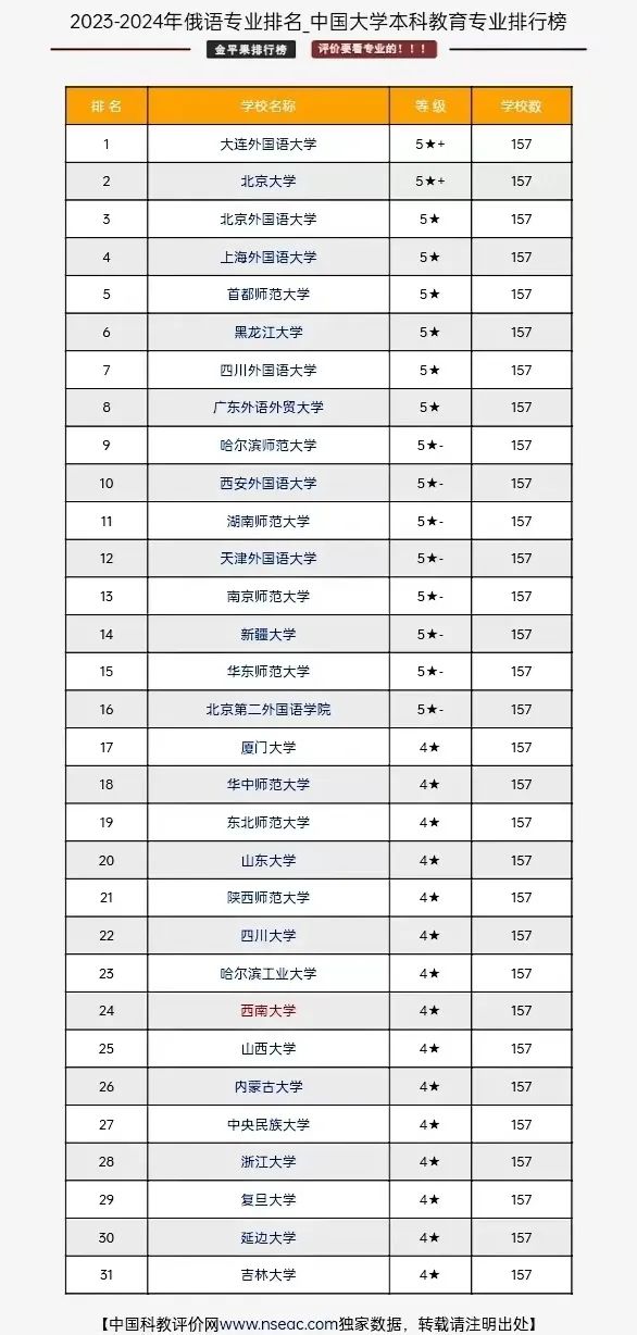我校俄语专业在中评榜《中国大学及学科专业评价报告(2023-2024)》排名第一