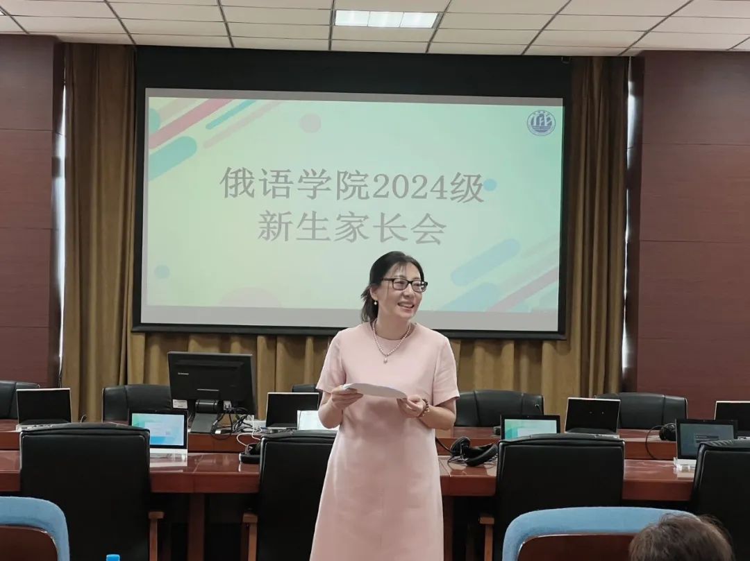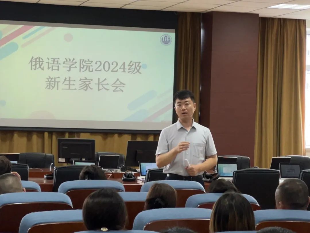 的发展历史、师资力量、学院软硬件设施、人才培养等进行了介绍,同时提醒家长重视与孩子的沟通交流,家校联合共同努力引导学生做好大学生涯规划、实现大学梦想!随后院长梁小楠针对专业设置、就业前景、实习实践、国际交流等问题进行了说明,最后希望家校联合共同培养“有专业本领、有家国情怀、有国际视野”的新时代三有复合型外语人才。最后2024级新生辅导员王健对新生的心理健康教育、奖助学金设置、入党程序、考研保研情况等进行了说明,希望家校联合帮助新生尽快适应大学生活。