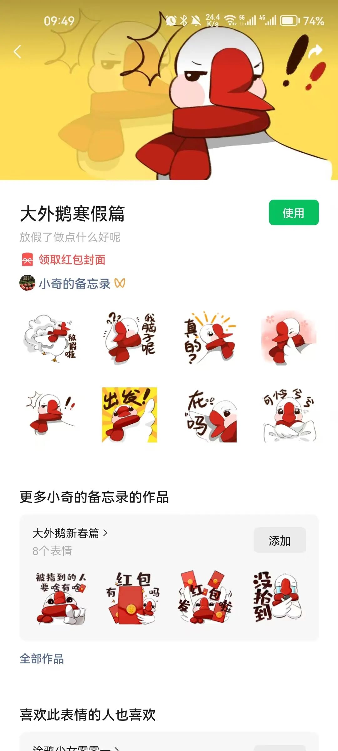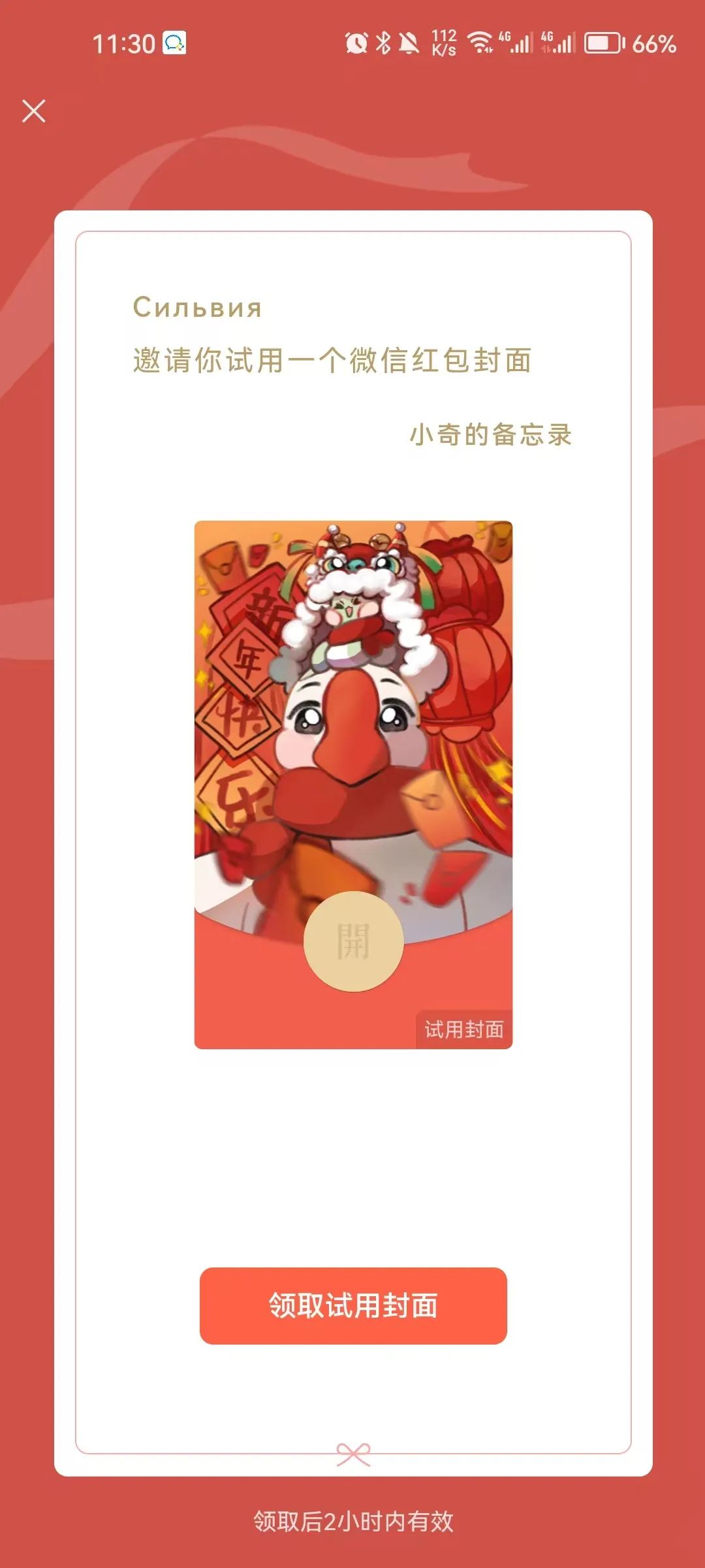 Step3:点击“领取并使用”即可领取大外鹅龙年限定款红包封面!