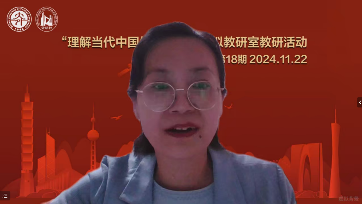 2024年11月22日19点,由我校刘宏教授主持的教育部“理解当代中国俄语系列”虚拟教研室第十八期教研活动在云端成功举办。来自虚拟教研室成员高校和国内其他高校的教师以及我校69书吧 师生共计近百人参加了本次教研活动。
