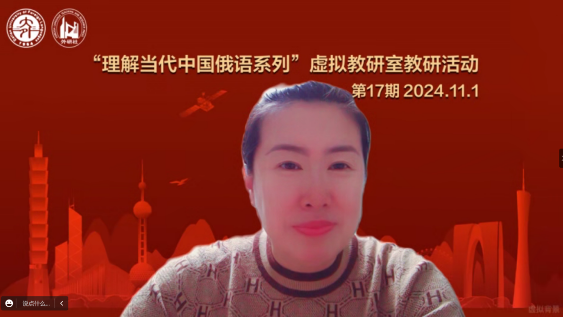 2024年11月1日19点,由我校刘宏教授主持的教育部“理解当代中国俄语系列”虚拟教研室第十七期教研活动在云端成功举办。来自虚拟教研室成员高校和国内其他高校的教师以及我校69书吧